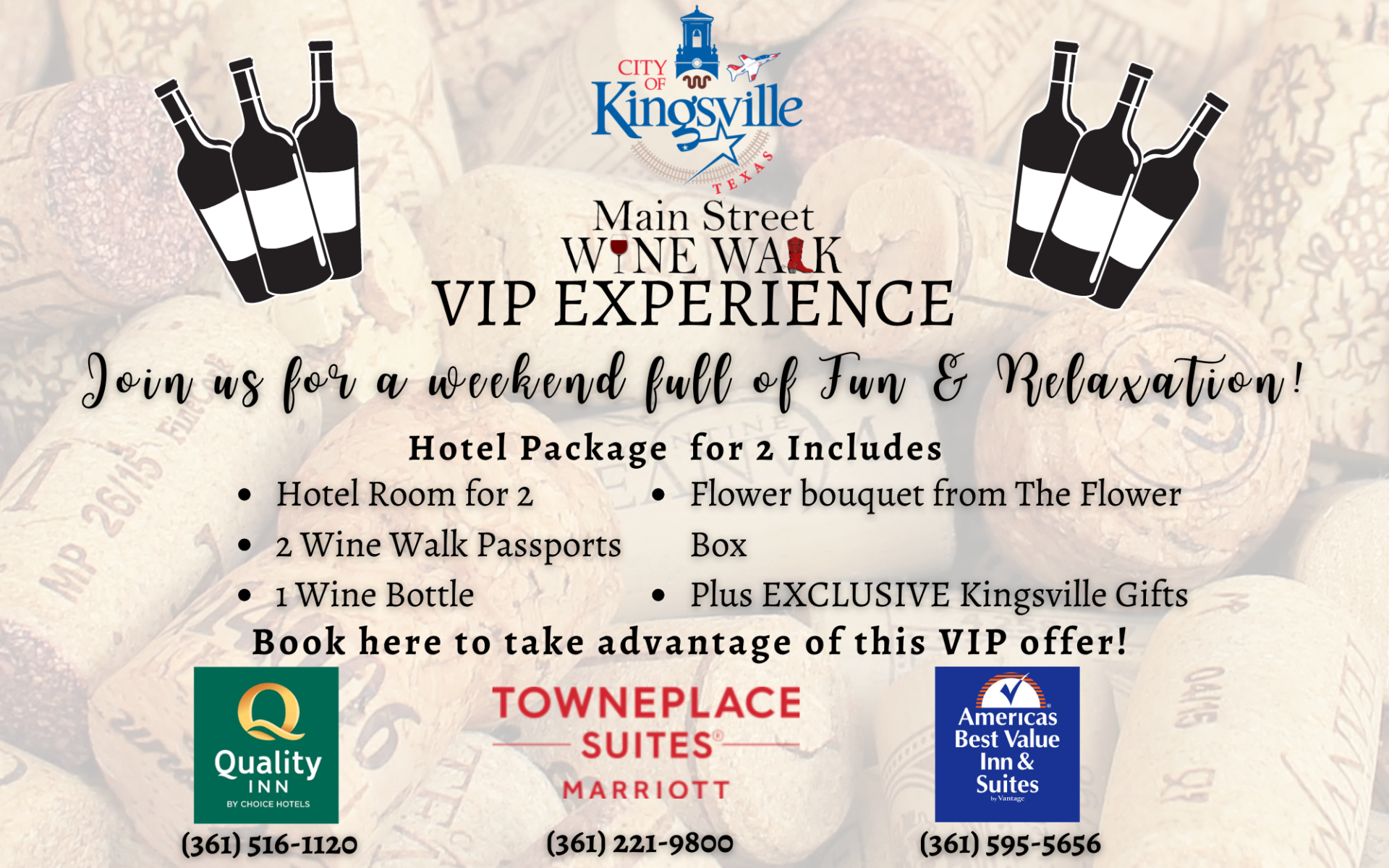 | Wine Walk Passport (2 per room) | $50 | ||||